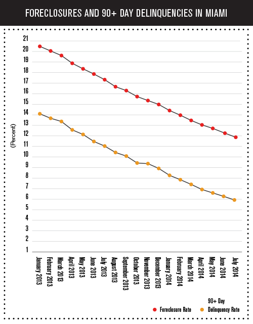 Miami foreclosures remain above national rates, but down significantly from 2013.
