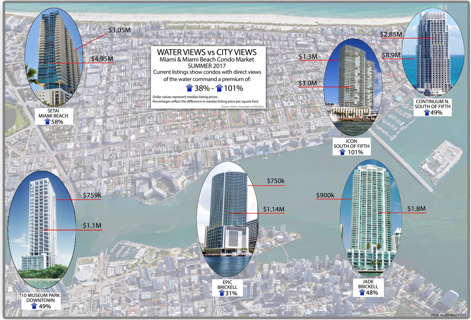 Inland, the price difference can be just as stark. Downtown condo tower Ten Museum Park, for example, has nearly a 50 percent difference in apartments with an ocean view. ($1.1 million to see the water vs. $759,000 to see the city.)