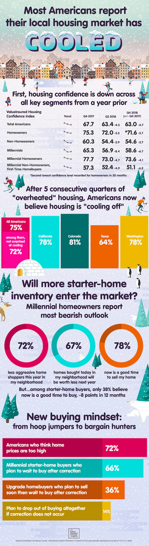 Heading into the winter months, many Americans are seeing the housing market cool off. According to ValueInsured’s Q4 2018 Modern Homebuyer Survey, 75 percent of Americans believe their local housing market is cooling off.