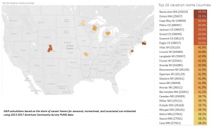 Areas are declared “vacation home” counties when 20 percent or more of the housing stock is used for recreational, vacation or seasonal purposes. Of the 3,141 counties in the U.S., 206 – 6.6 percent – are considered vacation home counties.