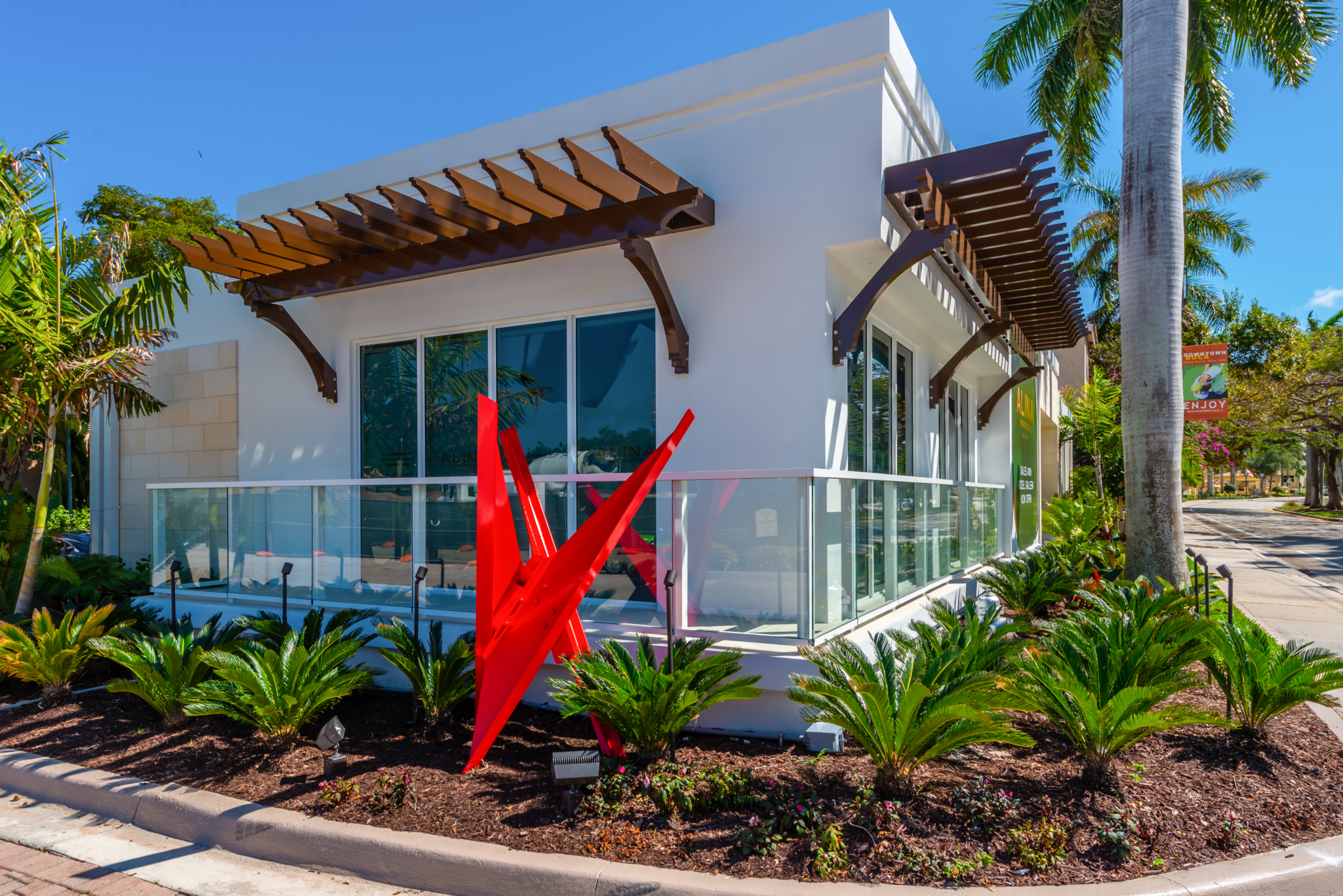 The 121-unit luxury condominium ALINA Residences in Boca Raton has an ongoing partnership with the Boca Raton Museum of Art to bring rotating sculptural exhibits to ALINA Currently, an outdoor sculpture by artist Larry Mohr is displayed at the project’s sales and model gallery located at 300 Southeast Mizner Boulevard. Crafted in 1984, the abstract piece is an “interpretation of Matisse’s outspreading centrifugal effect in paintings of dancers,” according to the artist