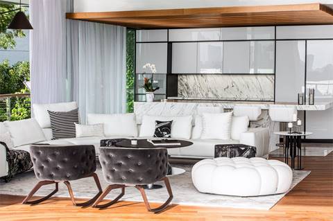 Luxury waterfront condominium project Monad Terrace hired French Moroccan interior designer Rita Chraibi of International Designers to bring her unique flair for integrating art and fashion to the project. Working closely with New York art gallery, Galleria Ca’ d’Oro, Chraibi incorporated art pieces with “Haute Couture furniture” by fashion designers Jean Paul Gautier, Christian Lacroix and Kenzo Takata for Roche Bobois.