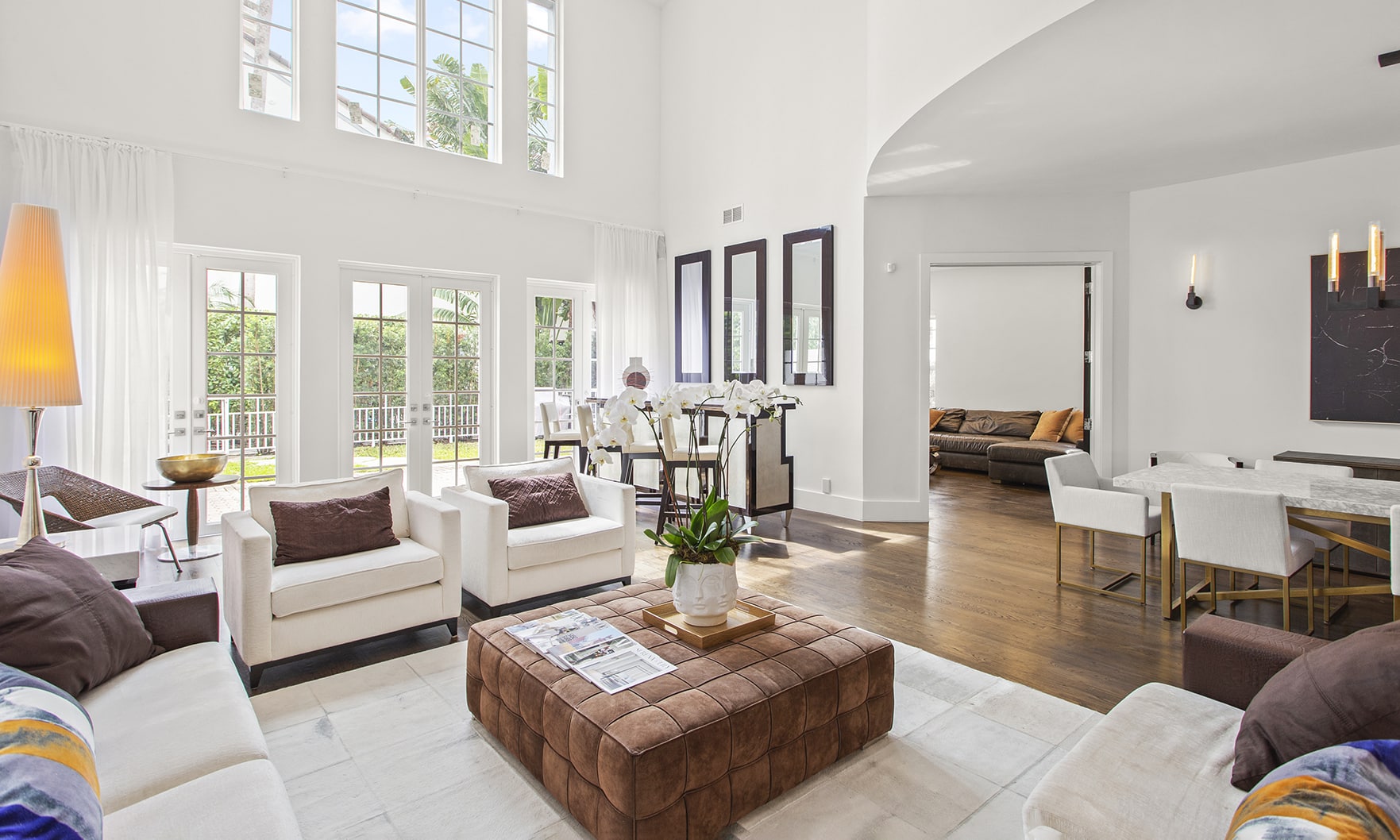 The property at 3686 NE 195th Lane features three bedrooms, four bathrooms with high ceilings and is fully renovated. The listing agent is Richard Garcia from RelatedISG.