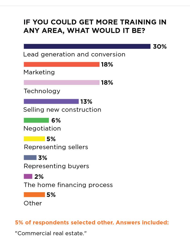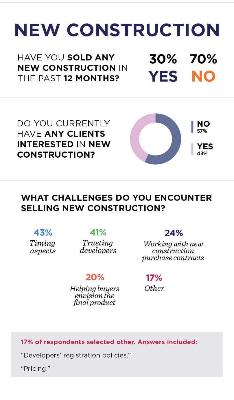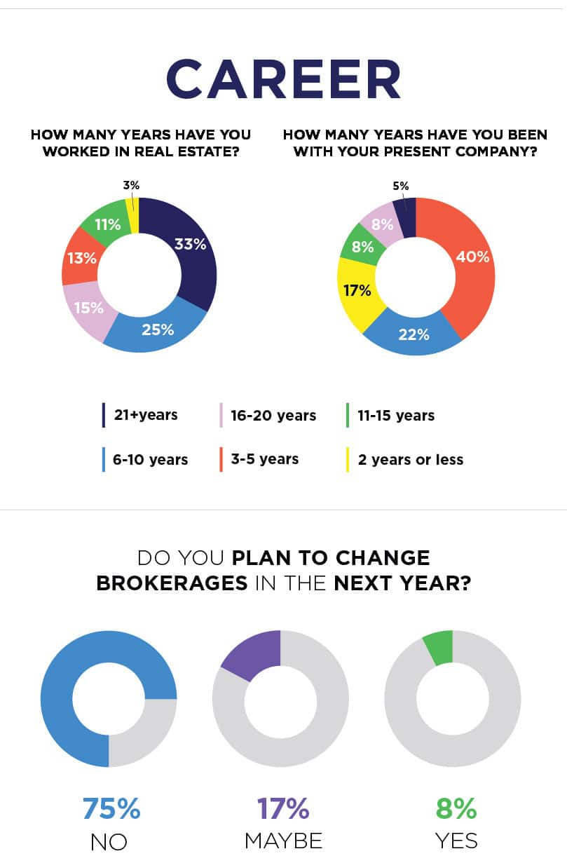 Income, careers, agents on training, marketing, demographics, client profiles, managing brokers, real estate teams and new construction.