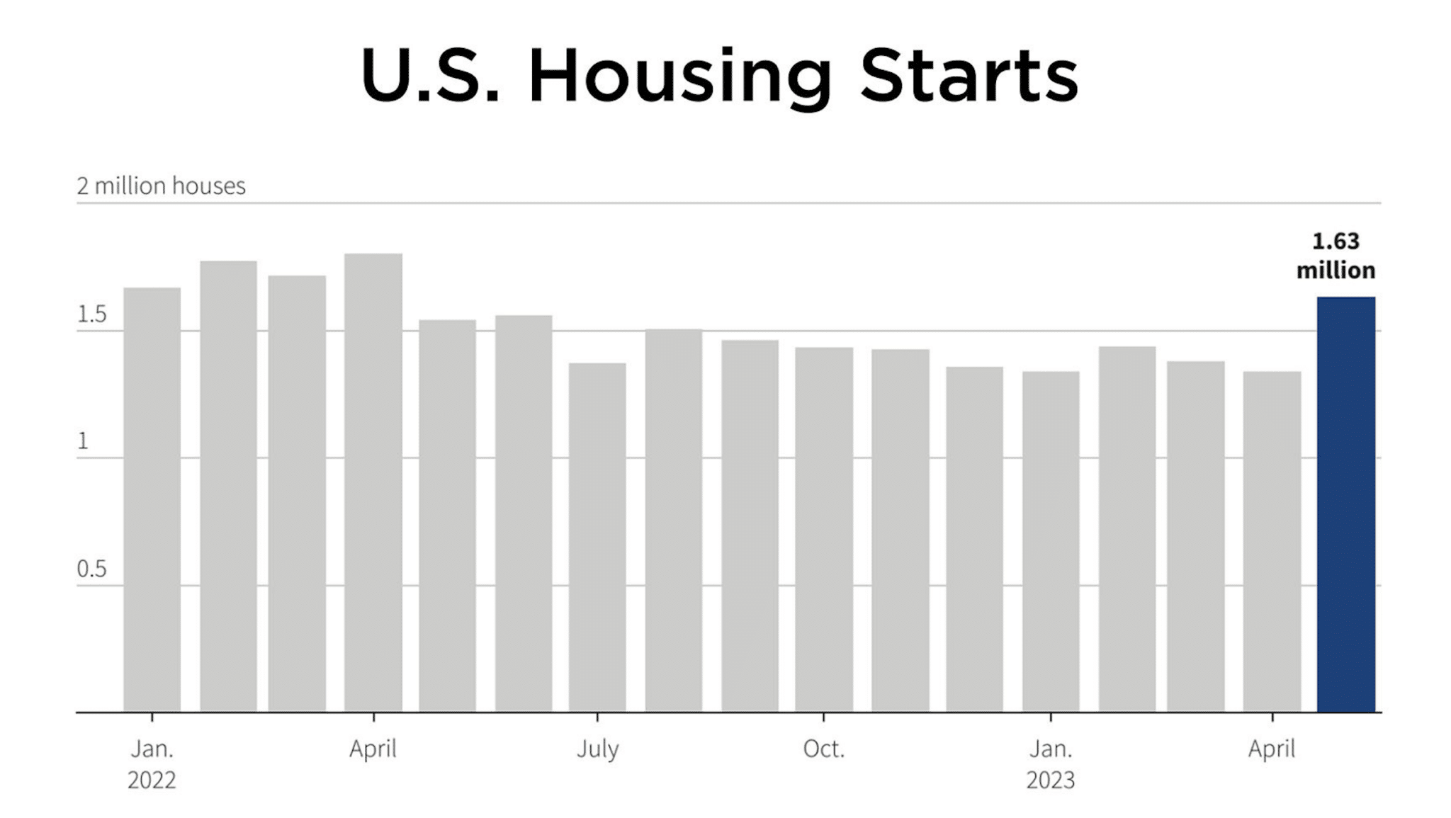 The annual rate of new construction surged to 1.631 million units in May (the most recent data available). That marks a month-over-month bump of 291,000 units, the biggest leap in 33 years, according to Reuters. May’s rate of construction was also the highest since April 2022, which itself was the highest since 2006.