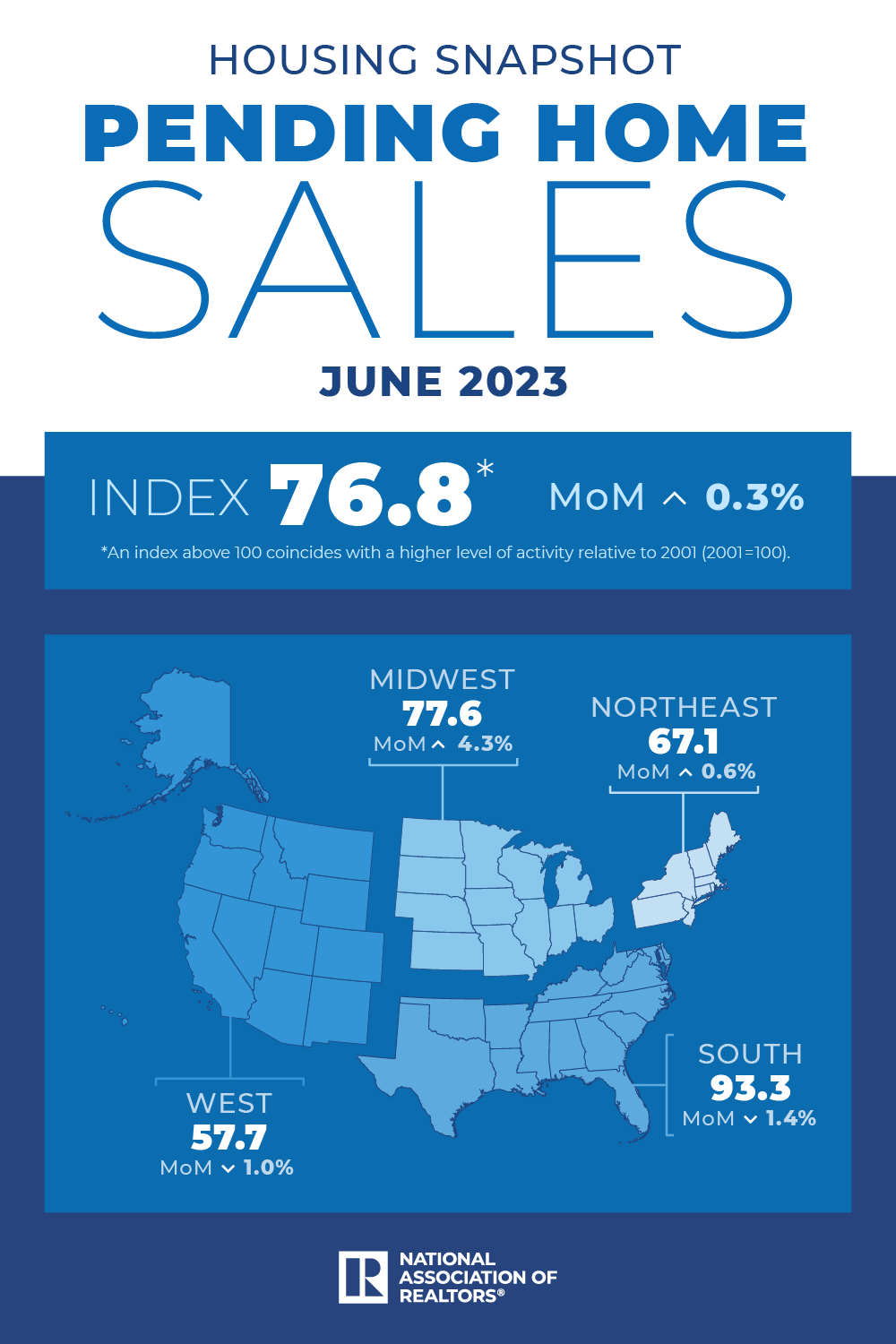 June pending-home sales ticked 0.3% higher compared to May, the first increase since February, the National Association of REALTORS® reported, citing its Pending Home Sales Index.