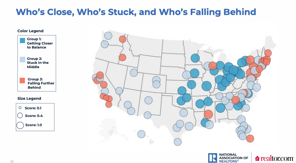 According to the report, 30% of the 100-largest metro areas are getting closer to a balanced housing market.