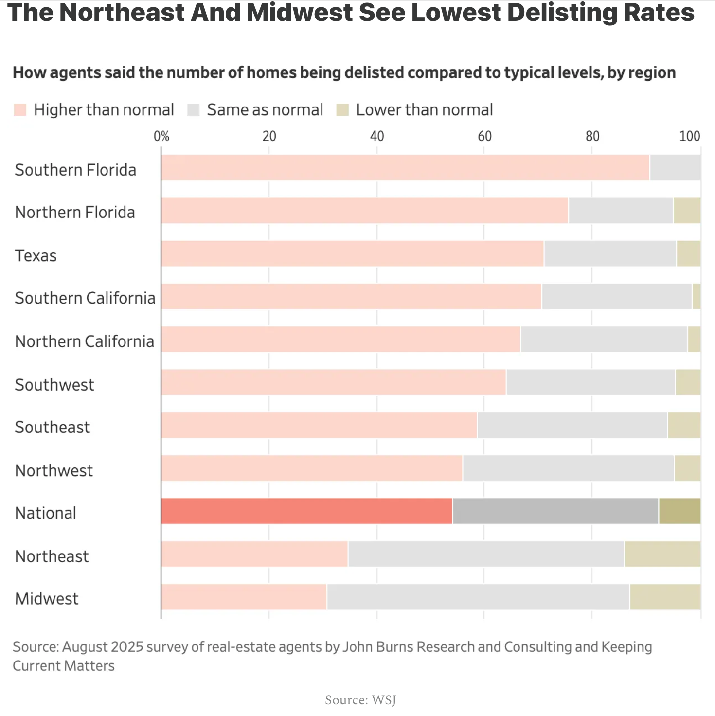 Delistings remain lowest in the Northeast and Midwest, where tighter inventory supports demand, while a parallel push toward private or off‑MLS “test” listings delivers little proven pricing premiums, sells a small share privately and often lengthens time to sell despite industry claims.