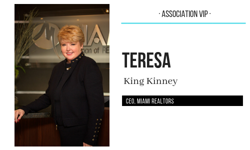 Teresa King Kinney CEO, Miami Realtors MIAMI Association of REALTORS® (MIAMI) Chief Executive Officer Teresa King Kinney has led the nation’s largest local Realtor association for 25 years, playing an integral role in making Miami a top real estate market
