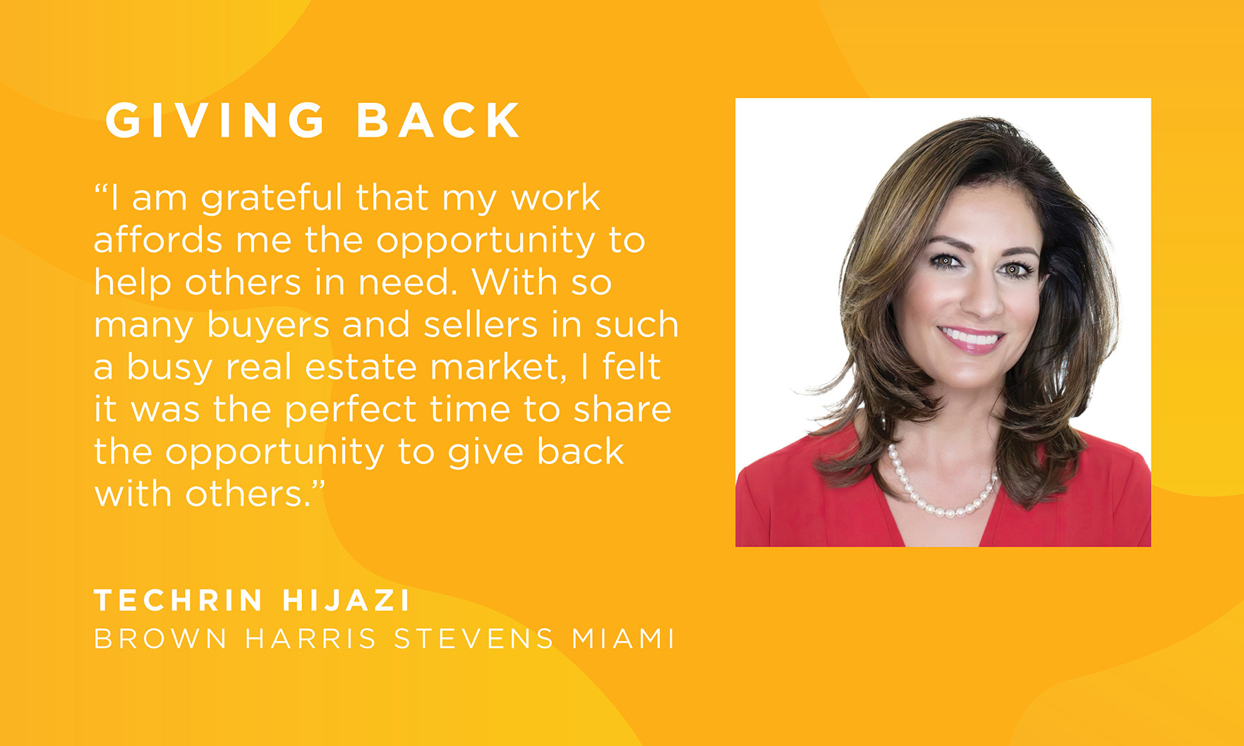 As demand for luxury homes in Miami remains steady and little inventory is left behind, real estate agents rely on creativity and value-added incentives and connections to stand out. One Miami agent, Techrin Hijazi, is banking on attracting new business by giving back to the community.