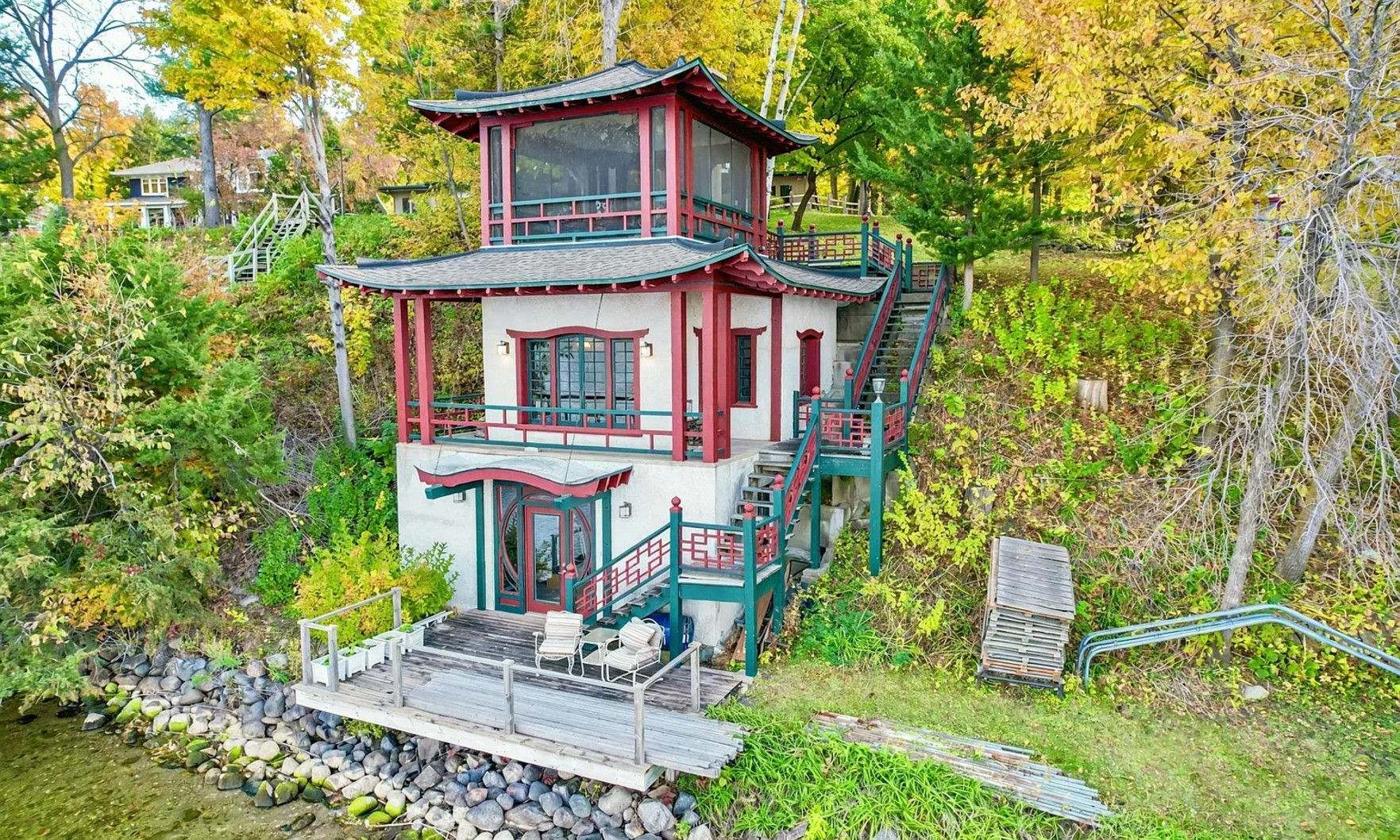 This Shorewood, Minnesota, home comes with a Japanese-style pagoda boathouse on Lake Minnetonka.