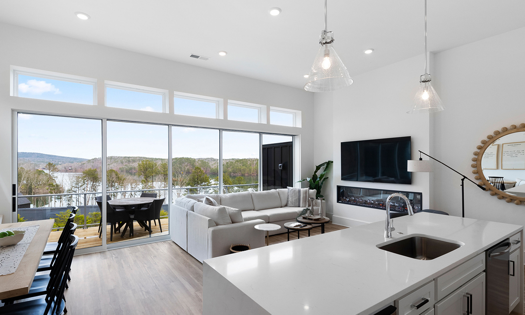 The plans and features for the Waterview Townhomes are stunning. The breathtaking panorama of the lake and the private, wooded, long-range mountain views can be enjoyed from every room. The family room wall of windows showcases soaring ceilings and unobstructed lake and mountain views all year long.