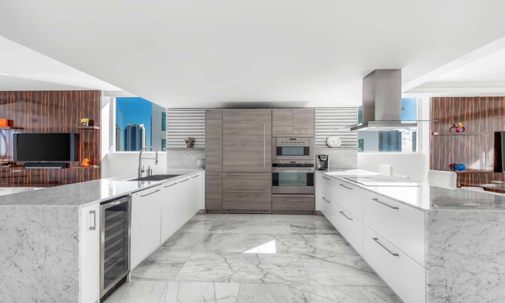 One of a kind penthouse in the sky! This corner skyloft tri-level penthouse offers 4 beds, 4.5 baths, 3,140 square footage under AC and 1,500 square footage of outdoor space (balcony on first level and private rooftop with jacuzzi and breathtaking views). Newly painted, polished marble floors and kitchen, tastefully furnished and decorated!