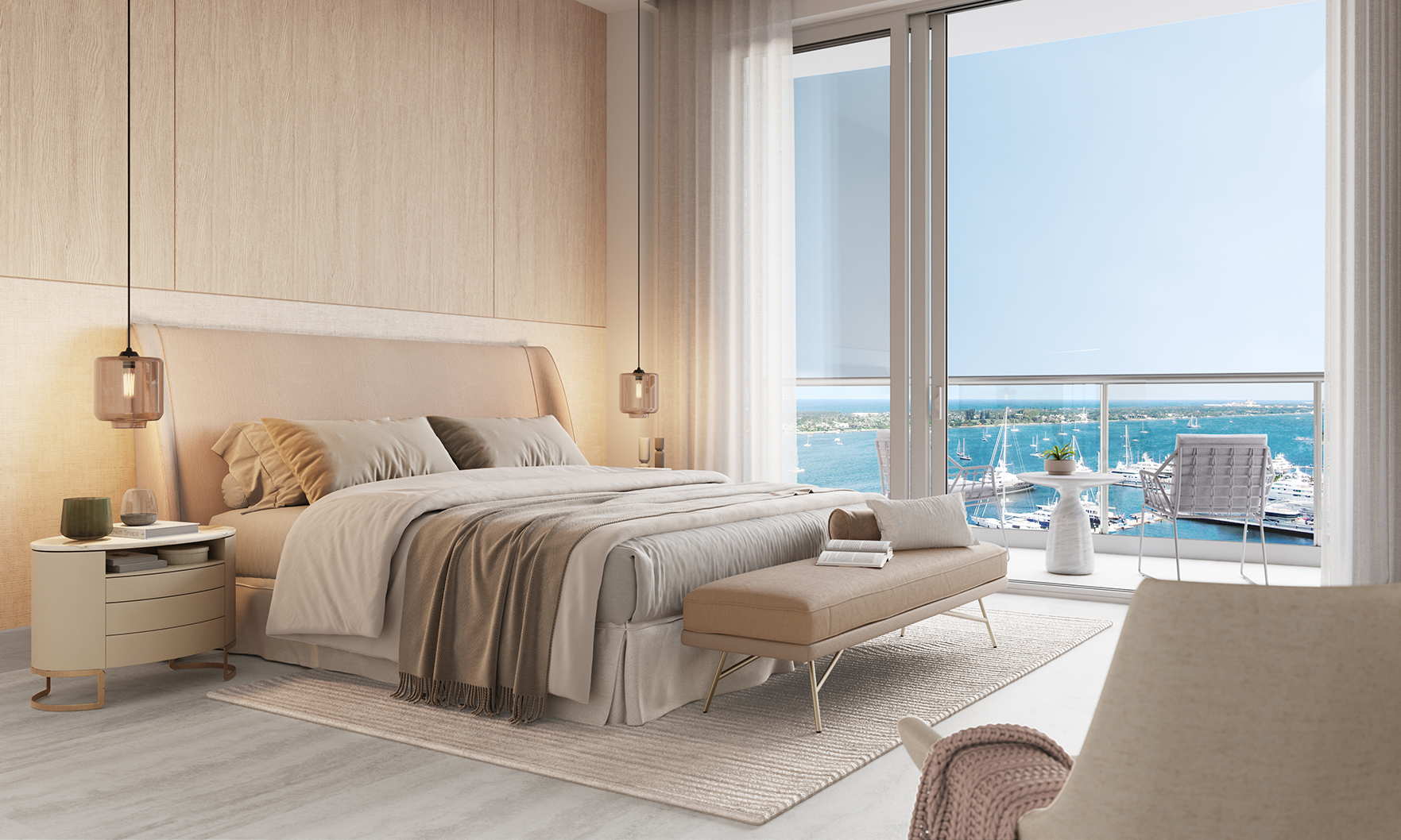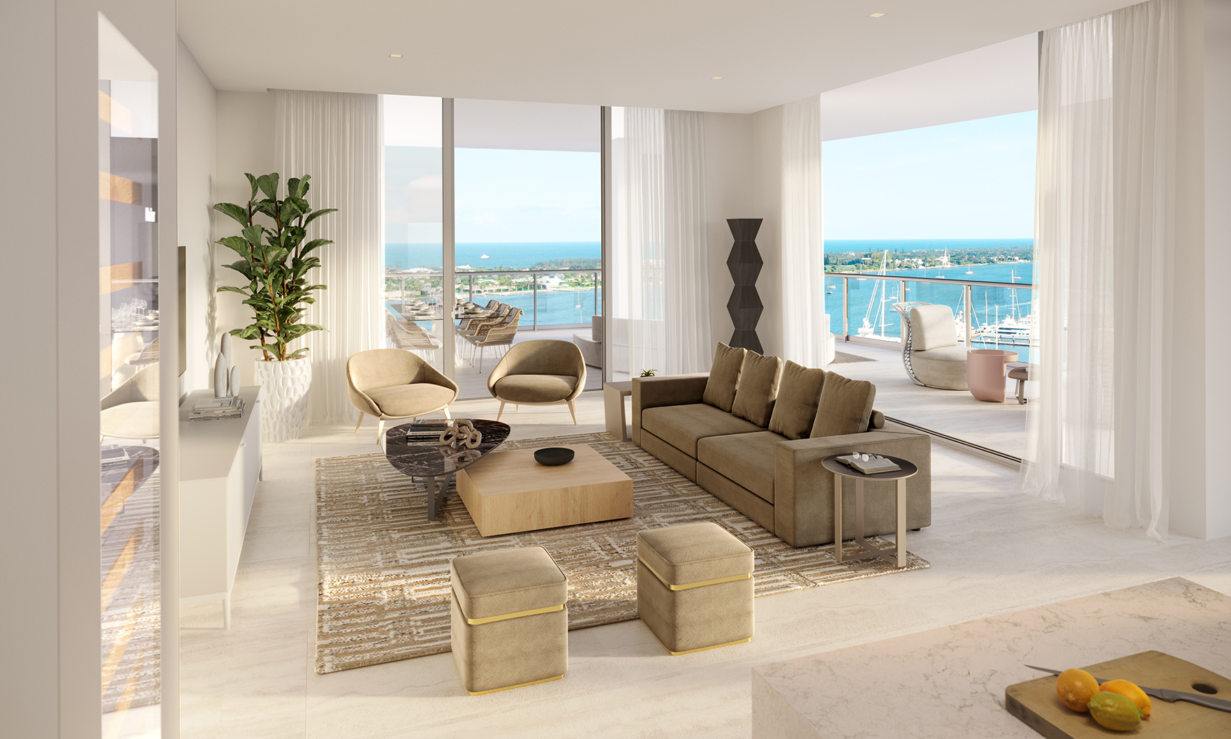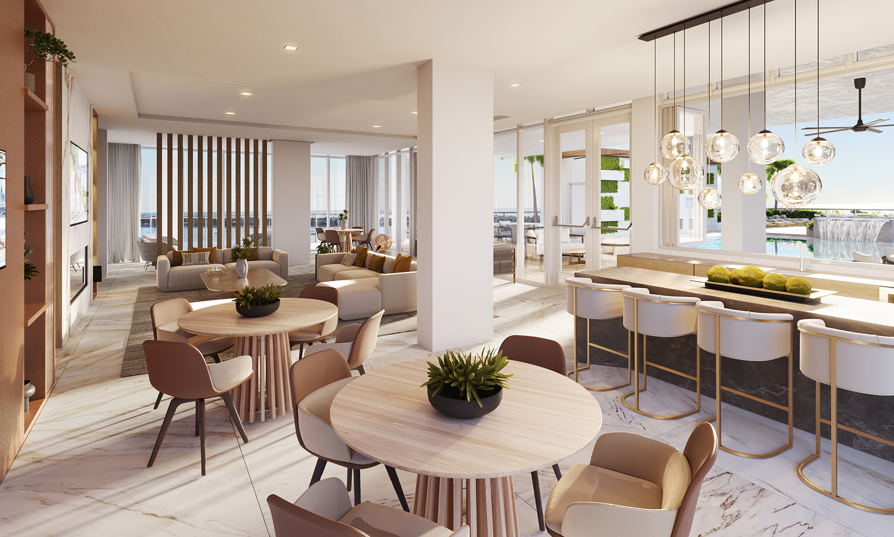 Residents of Alba enjoy an extensive collection of amenities, beginning with a private gated entry and a dedicated dock with available boat slips. A full-floor amenity level offers both sunrise and sunset pools for all-day enjoyment, along with a luxurious spa, state-of-the-art TechnoGym fitness center and a dedicated yoga studio. Additional conveniences include 24-hour valet, security, and concierge services.