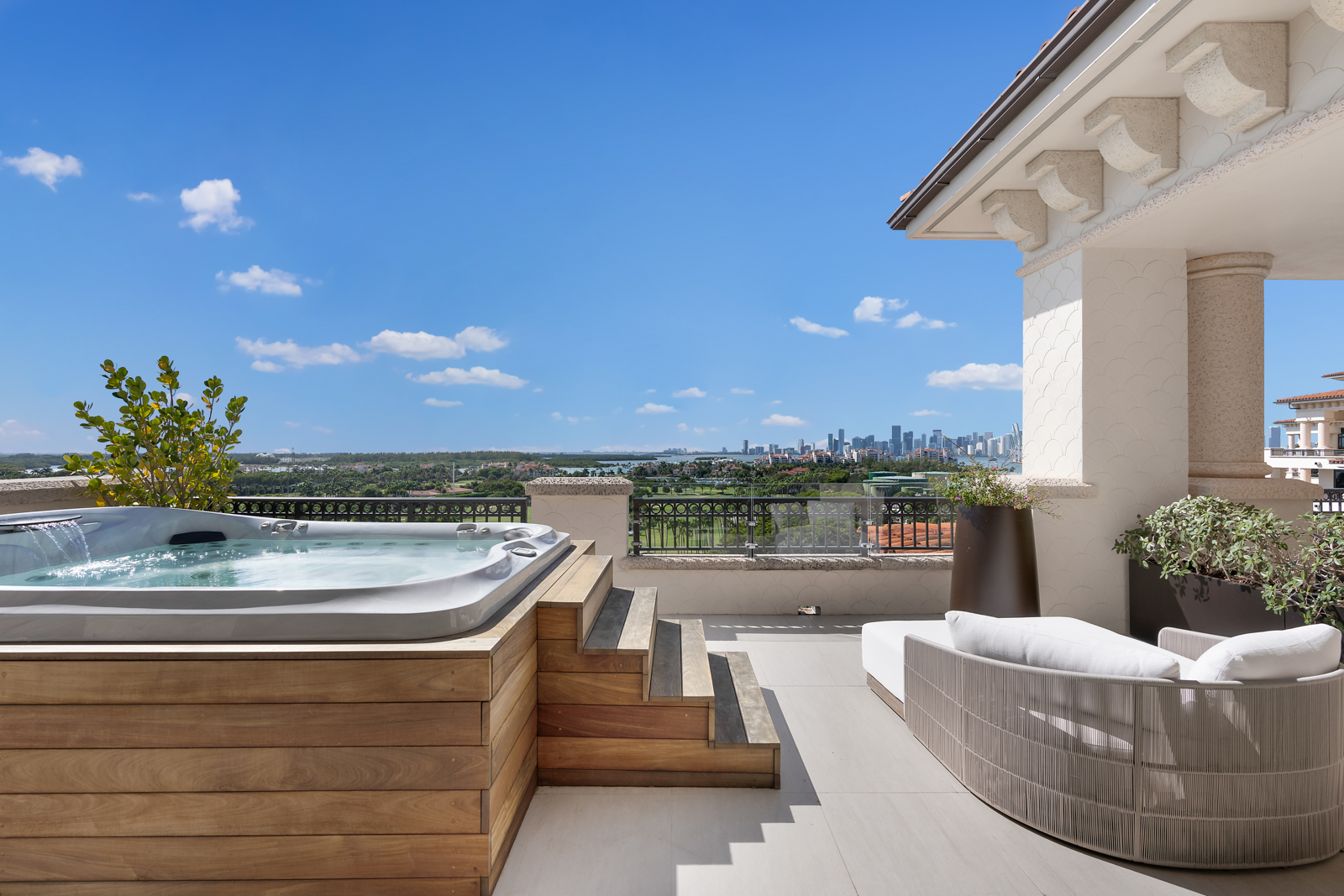 The penthouse is in the ultra-luxury Palazzo Del Sol condo tower on Fisher Island, which is only accessible by ferry or boat. Property Shark recently identified the exclusive enclave’s 33109 ZIP code as the third-most expensive in the U.S. and the most-expensive in Florida.