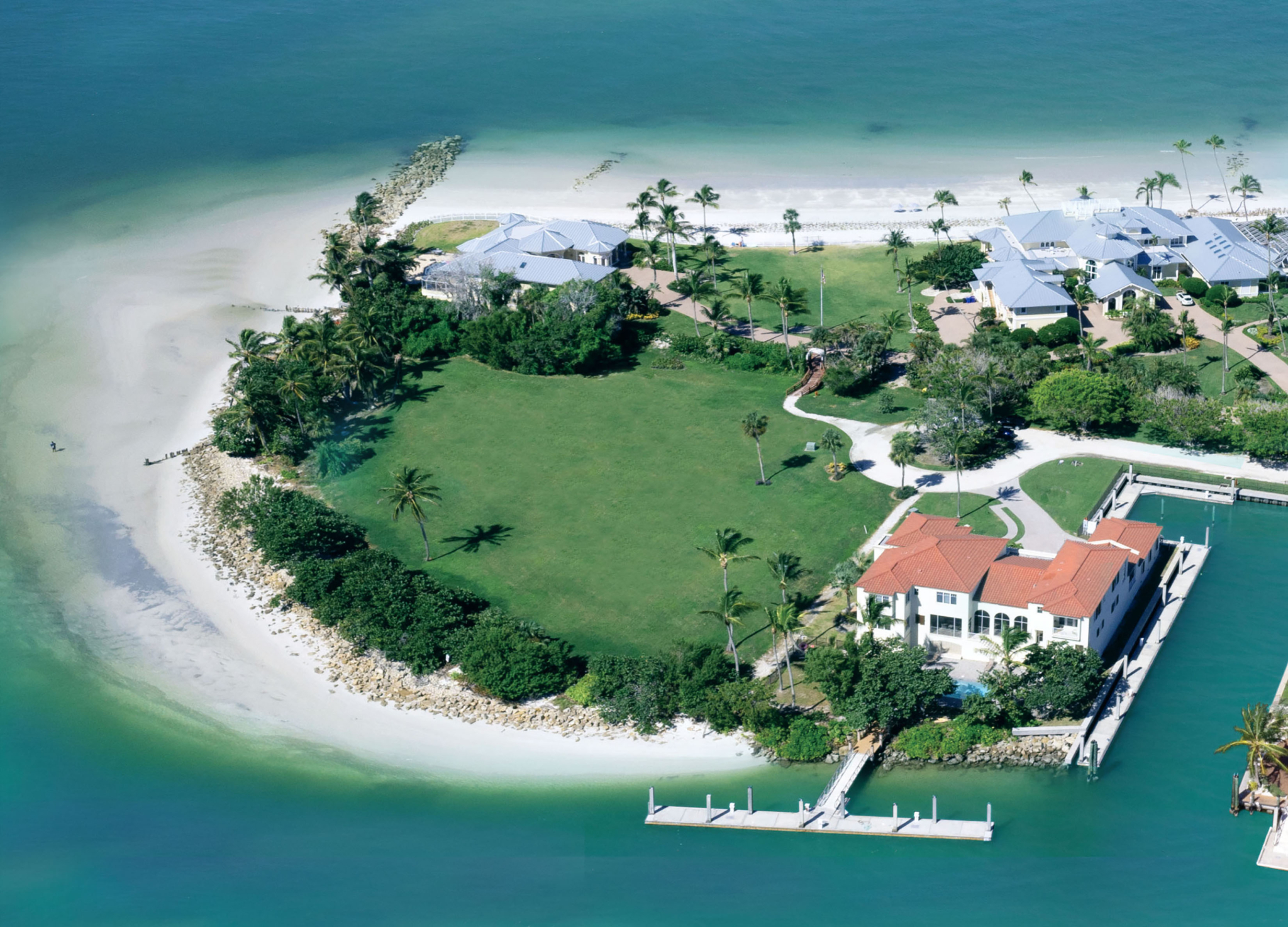 The compound spans almost 400,000 square feet and has approximately 708 feet of beachfront and Gulf of Mexico views, 952 feet of bay views and a yacht basin measuring 231 feet. The property can also accommodate more than 200,000 square feet of additional residential development.