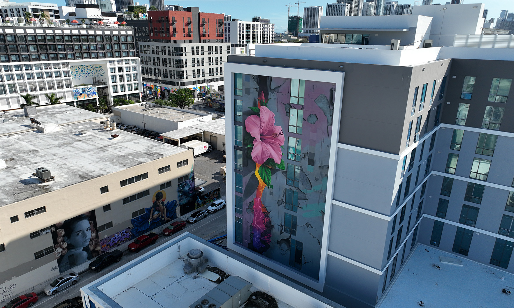 The Joule House multifamily community in Wynwood opened in June, bringing 308 luxury apartments to Miami’s arts district. To pay homage to the project’s vibrant environment, the developer, Fisher Brothers, collaborated with art-tech platform Wxllspace to add over 20 original murals from local artists to public spaces. Participants included Dasic Fernández, Nico, Remote, Mr. June, Abstrk, BK Foxx, Chnk, Disem, Golden, Grabster, Hiero Veiga, Hoxxoh, Jose Felix Perez, Krave, Nate Dee, Quake, Rage Johnson, Ruben Ubiera and Tati Suarez.