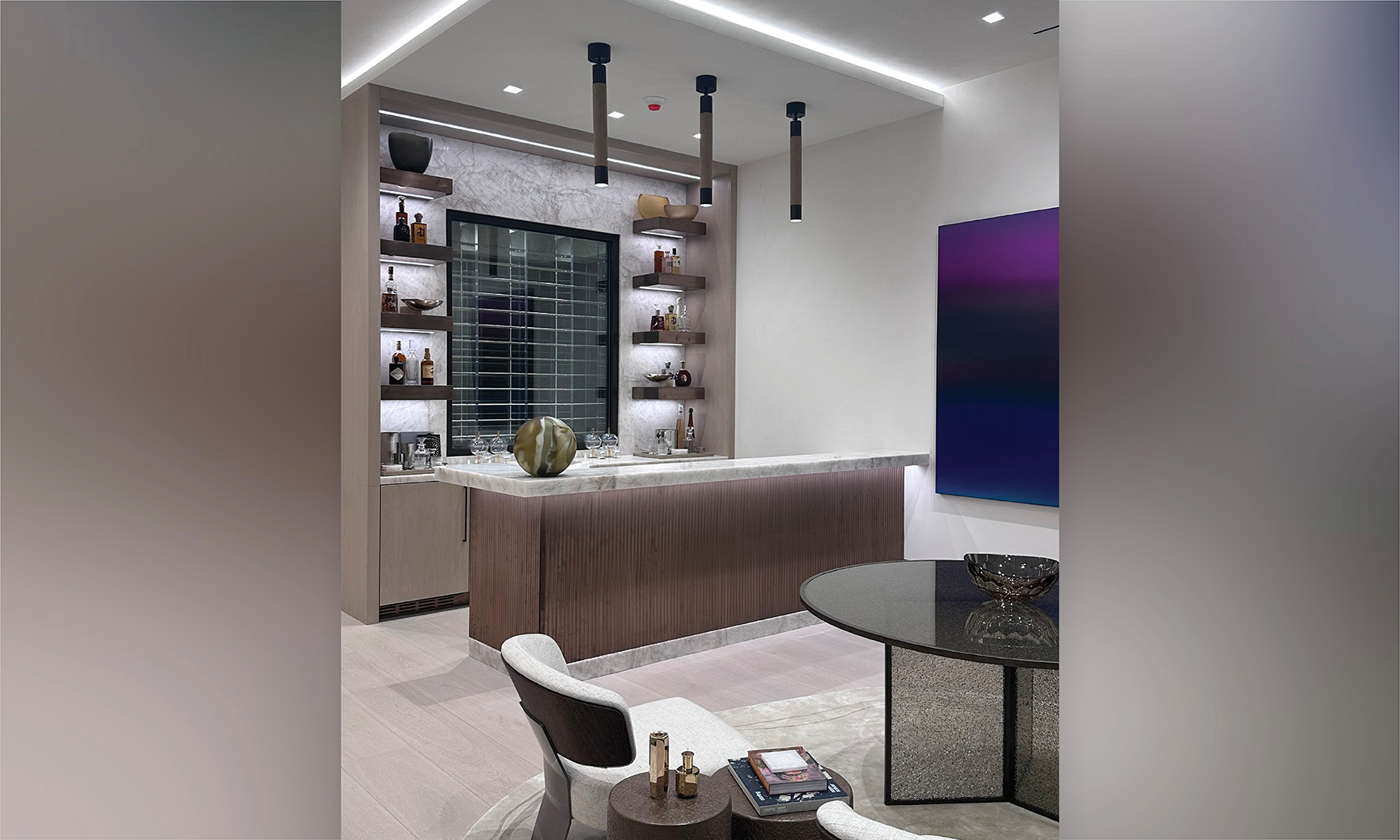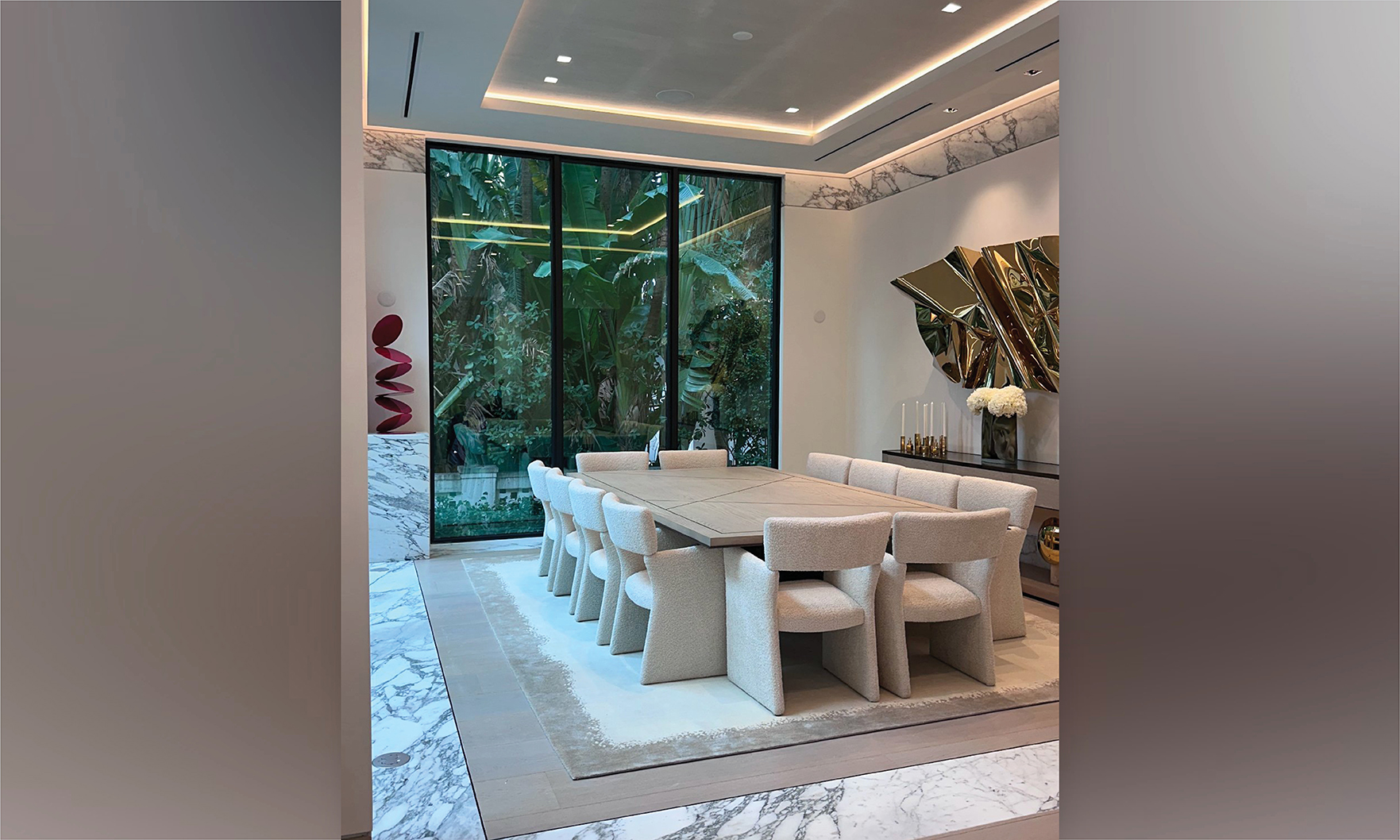 The custom home was built to showcase Authentic Luxury Group’s new Barneys New York Home collection, which will launch later this year. Slim Keskes, creative director of Barneys Home, handled interior design, while Kobi Karp was the architect.