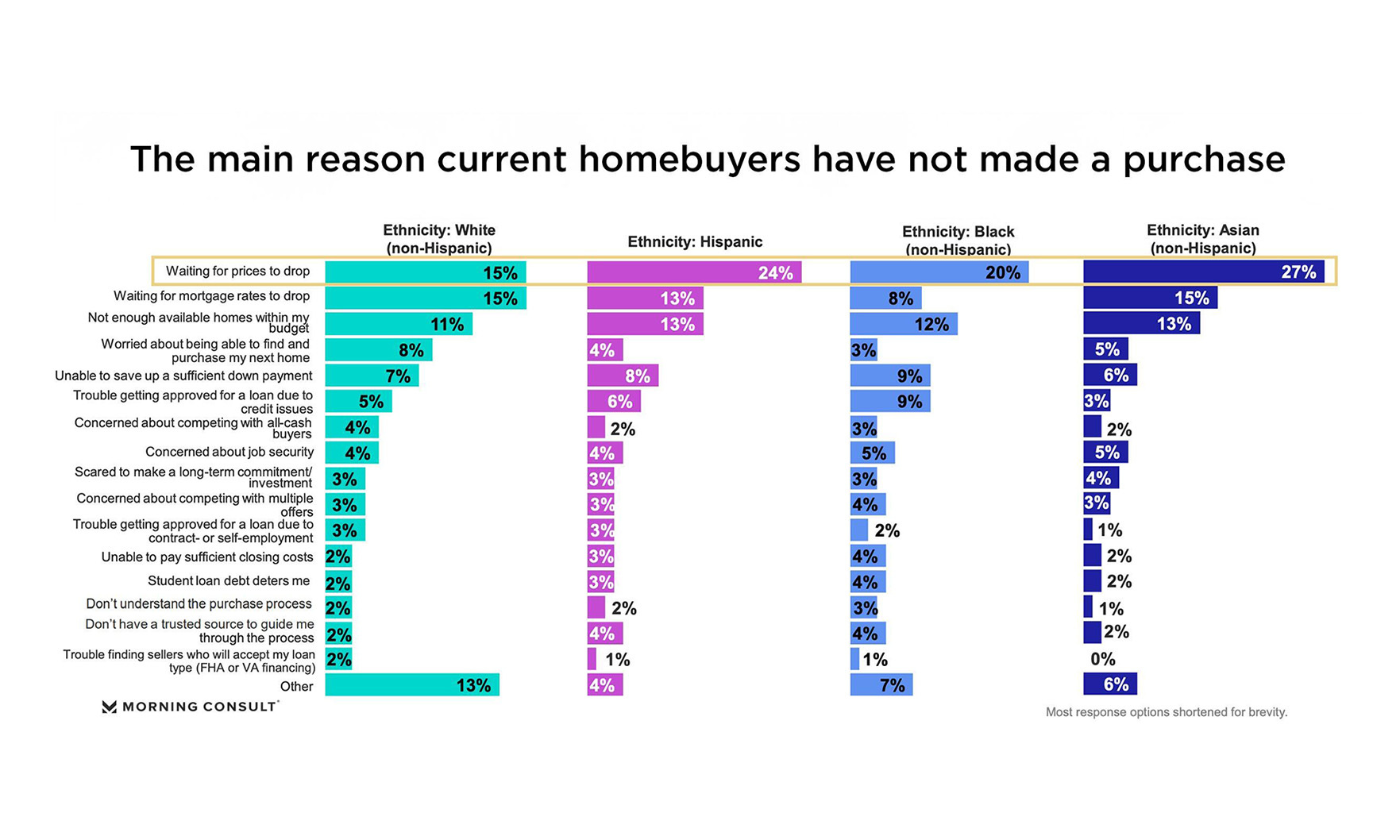 Homebuyers from all demographics are waiting for the same thing: lower prices and mortgage rates