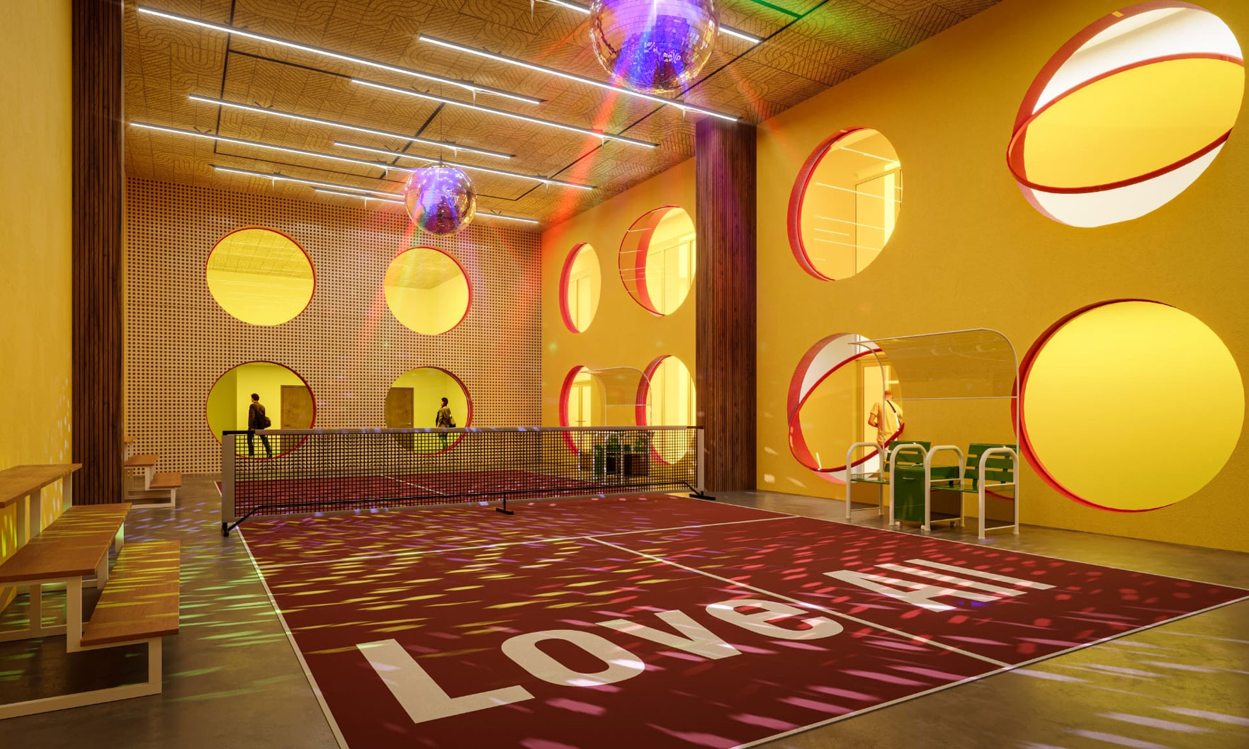The Standard Residences in Midtown Miami include pickleball court that doubles as a disco floor